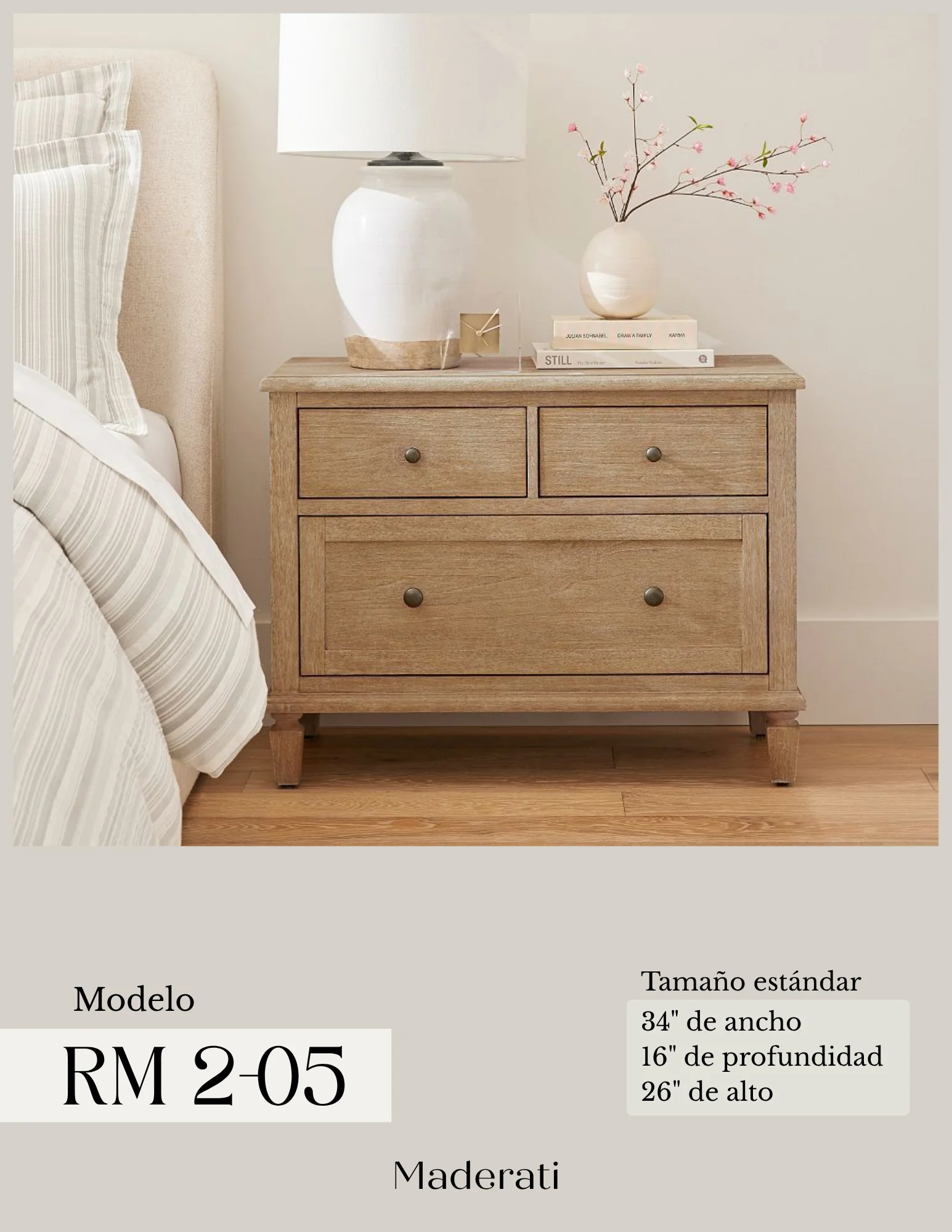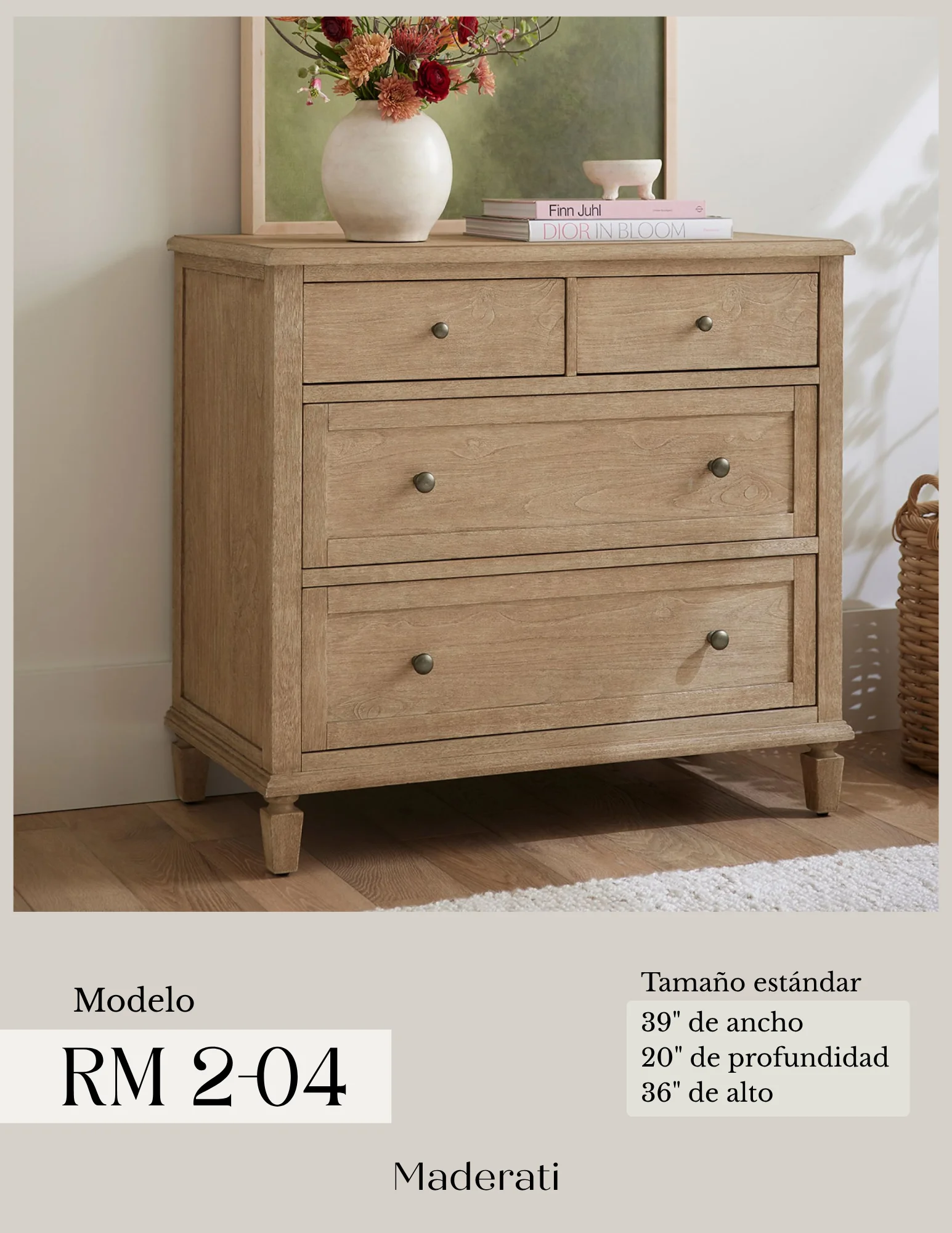 ¿Puedo personalizar mi pedido? Todos nuestros productos son personalizables; puedes elegir una de nuestras distintas maderas, acabados, telas, pieles, colores, entre otras muchas opciones. Para personalizar tu pedido, ¡comunícate con un agente de ventas! WhatsApp (809) 629-5819. | ¿Cuáles son los tiempos de fabricación? Los tiempos de fabricación son de 25 a 45 días laborables en proyectos residenciales, de acuerdo al número de orden que le corresponda. Para proyectos de hostelería y proyectos especiales de alto volumen, se recomienda pactar los tiempos con tu agente de ventas. WhatsApp (809) 629-5819. |